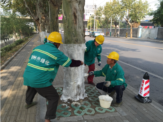 為加強(qiáng)法桐病蟲害冬季防治,美化城市道路景觀,市綠化管理處從今年10月20日開始對(duì)中心城區(qū)7000余株法桐進(jìn)行涂白,為樹木穿上白色“新衣”。