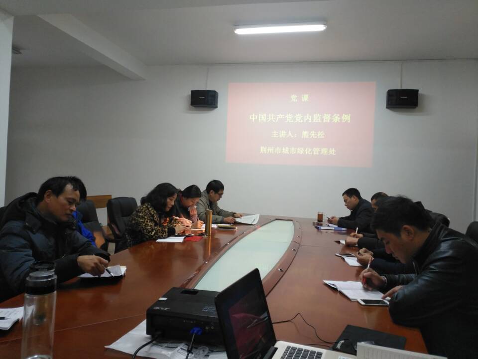 上黨課,跟黨走 2016年12月10日早上8:30,從綠化處會(huì)議室傳來(lái)了“我志愿加入中國(guó)共產(chǎn)黨,擁護(hù)黨的綱領(lǐng)……”的入黨宣誓聲。這不是某位黨員入黨前的宣誓,而是綠化處的黨員們?cè)谥販厝朦h誓詞。每月的10日,是綠化處的黨員活動(dòng)日。在12月的黨員活動(dòng)日,綠化處的黨員們胸佩黨徽,心懷對(duì)黨的熱愛(ài),一起認(rèn)真學(xué)習(xí)了《中國(guó)共產(chǎn)黨黨內(nèi)監(jiān)督條例》。上黨課,學(xué)習(xí)黨的理論;上黨課,時(shí)刻警醒自己;上黨課,將黨放在心中;上黨課,一輩子跟著黨走。