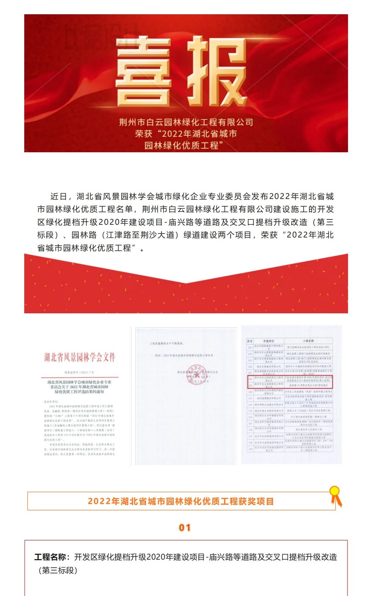 喜報|白云園林榮獲湖北省風景園林學會優(yōu)質(zhì)工程獎項
