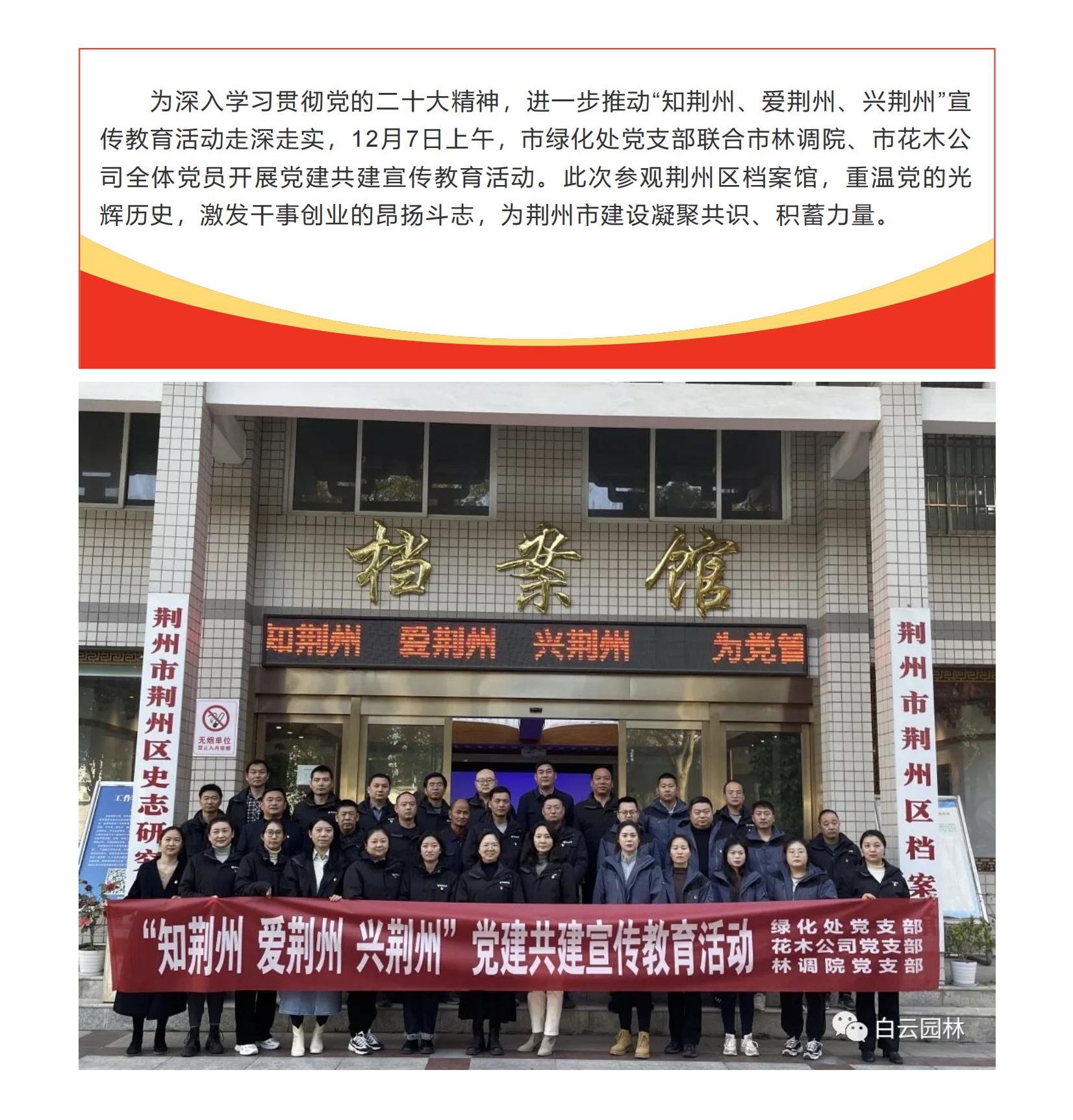 綠化處黨支部聯(lián)合市林調(diào)院、市花木公司黨支部開展“知荊州、愛荊州、興荊州”宣傳教育活動(dòng)