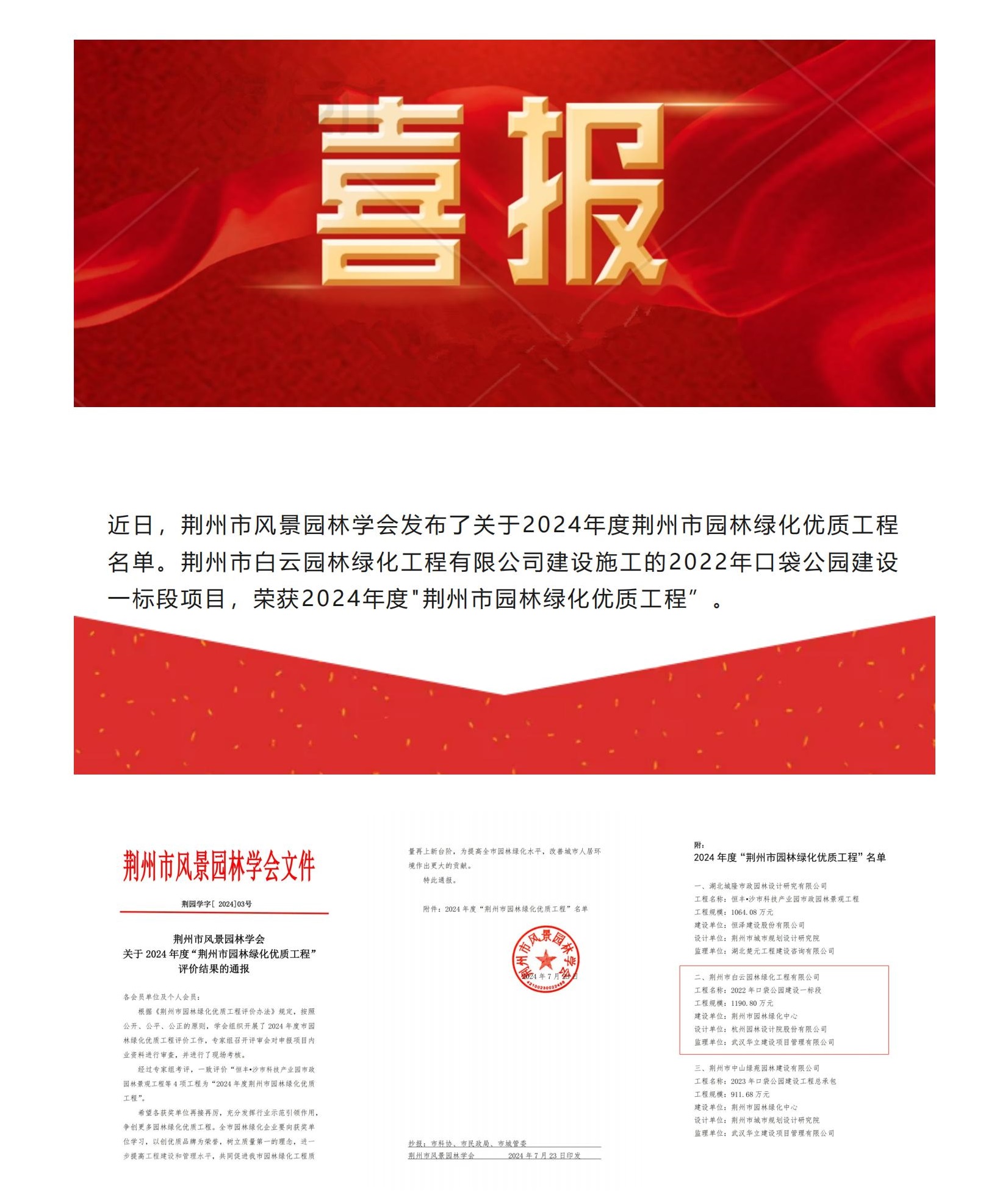 喜報|白云園林榮獲荊州市風景園林學會優(yōu)質(zhì)工程獎項
